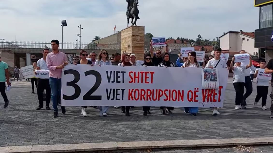 “14 viktima, 0 ditë burg”, familjarët e viktimave në spitalin modular në Tetovë sot protestuan në Shkup