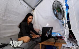 “Kishim shumë vështirësi me lidhjen e internetit, mungesën e energjisë elektrike dhe ujit, zhvendosjen, dhe mbi të gjitha me gjetjen e ushqimit”, i tha Al-Hassani agjencisë shtetërore palestineze WAFA, nga një strehë për të zhvendosurit në Khan Younis, në jug të Gazës, ku ai dhe miqtë e tij ishin mbledhur për të festuar diplomimin. Në Gazën qendrore, një tjetër maturante, Dima – e cila dha vetëm emrin e saj për mediat shtetërore, po festonte me familjen e saj, pasi kishte arritur të kapërcente traumën që lidhej me vitet e studimit të saj. Ajo tregoi se kishte pësuar lëndime të lehta nga një sulm izraelit që ndodhi gjatë ligjëratës së saj të parë privat të matematikës, i cili zhvillohej në një klub sportiv, pasi lufta kishte filluar.
