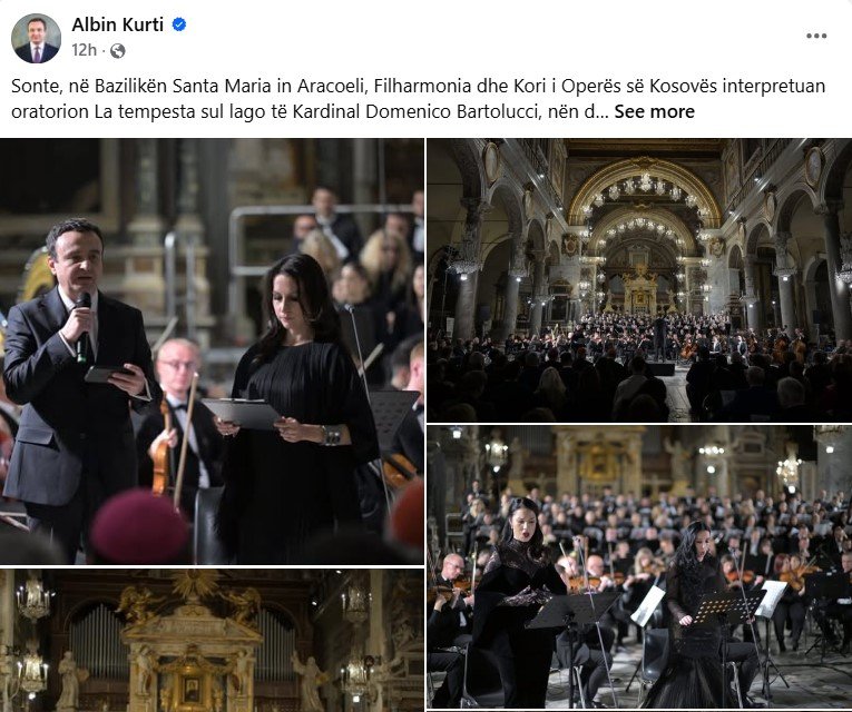Kryeministri në detyrë i Kosovës, Albin Kurti ka marrë pjesë në një koncert të Korit të Operës së Kosovës në Bazilikën Santa Maria in Aracoeli.