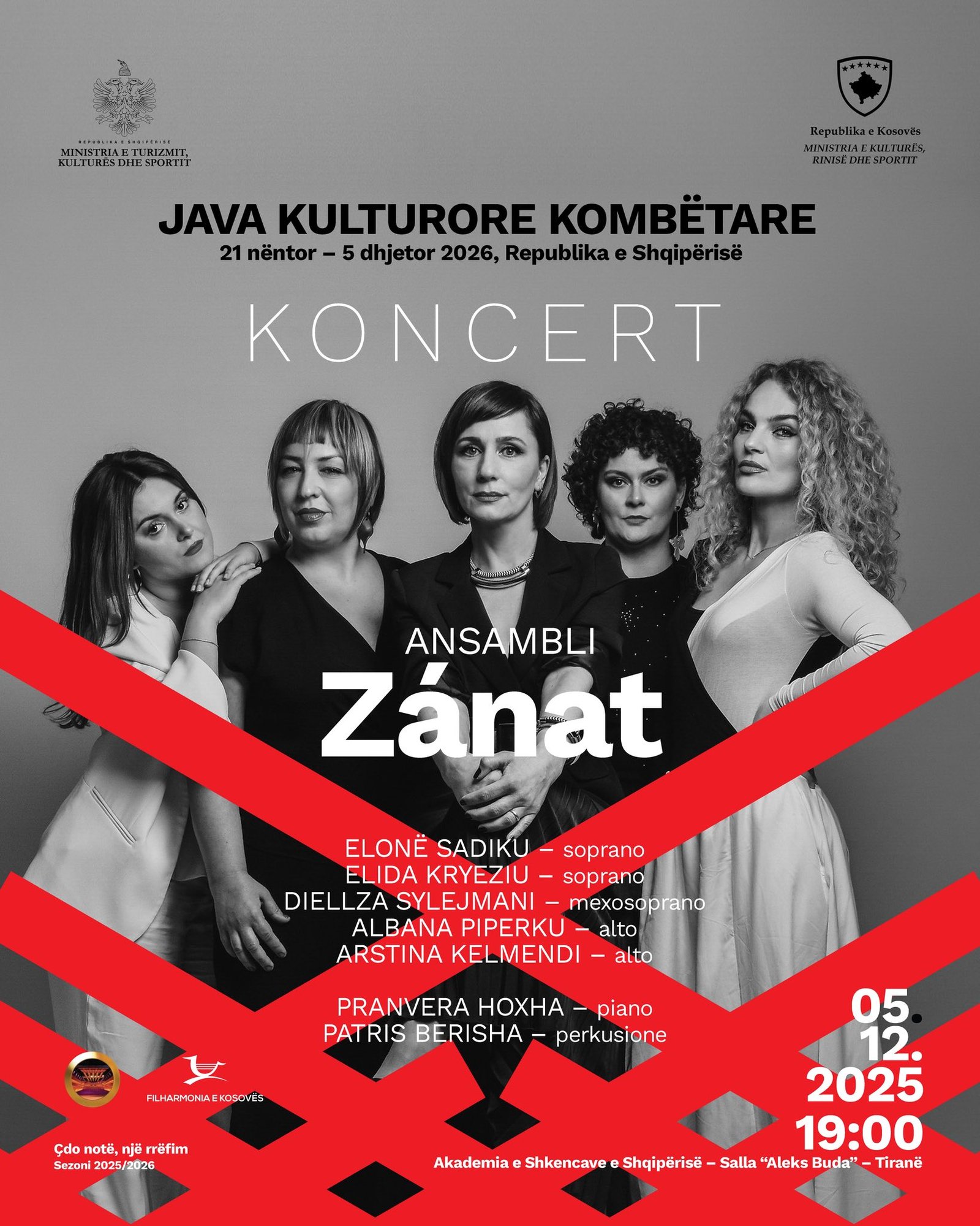 Të premten, më 5 dhjetor, prej orës 19:00, në Hollin Koncertor të Teatrit të Operës, Baletit dhe Ansamblit Popullor në Tiranë, ansambli Zánat do të japë një koncert të veçantë, i shoqëruar nga Filharmonia e Kosovës. Në skenë do të performojnë gjithashtu pianistja Pranvera Hoxha dhe perkusionisti Patris Berisha, duke ofruar një repertor të pasur […]