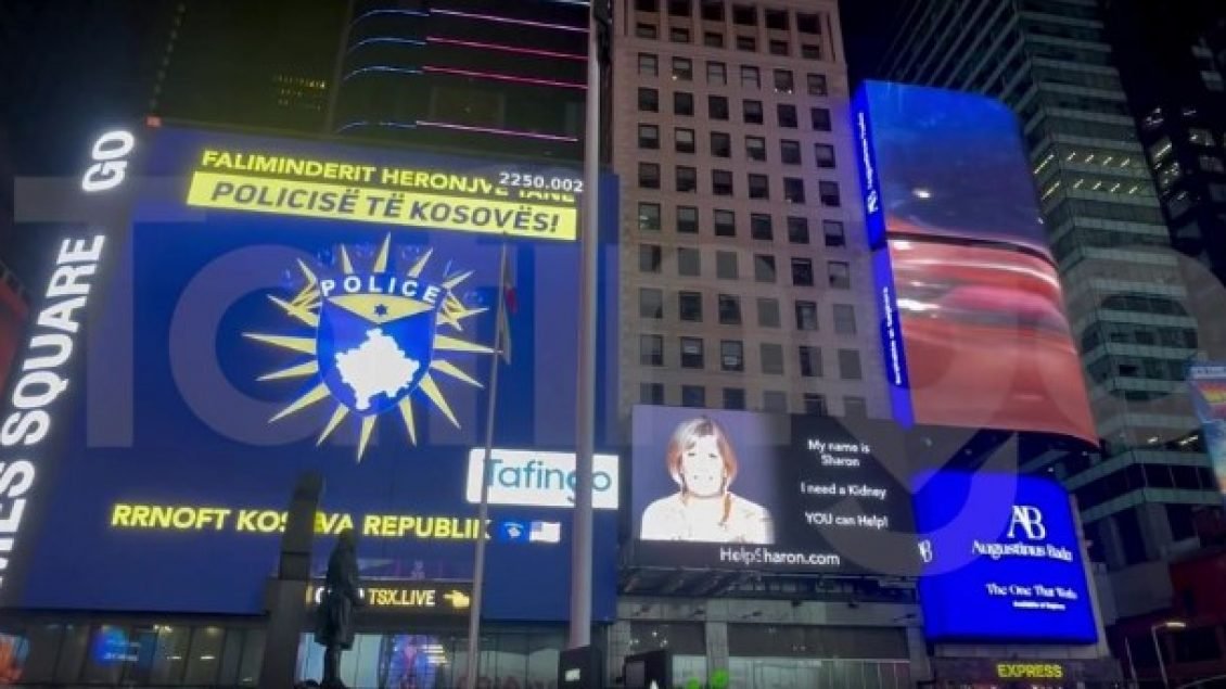 Pas vrasjes së policit në veri, logo e Policisë së Kosovës shfaqet në sheshin “Times Square” në New York